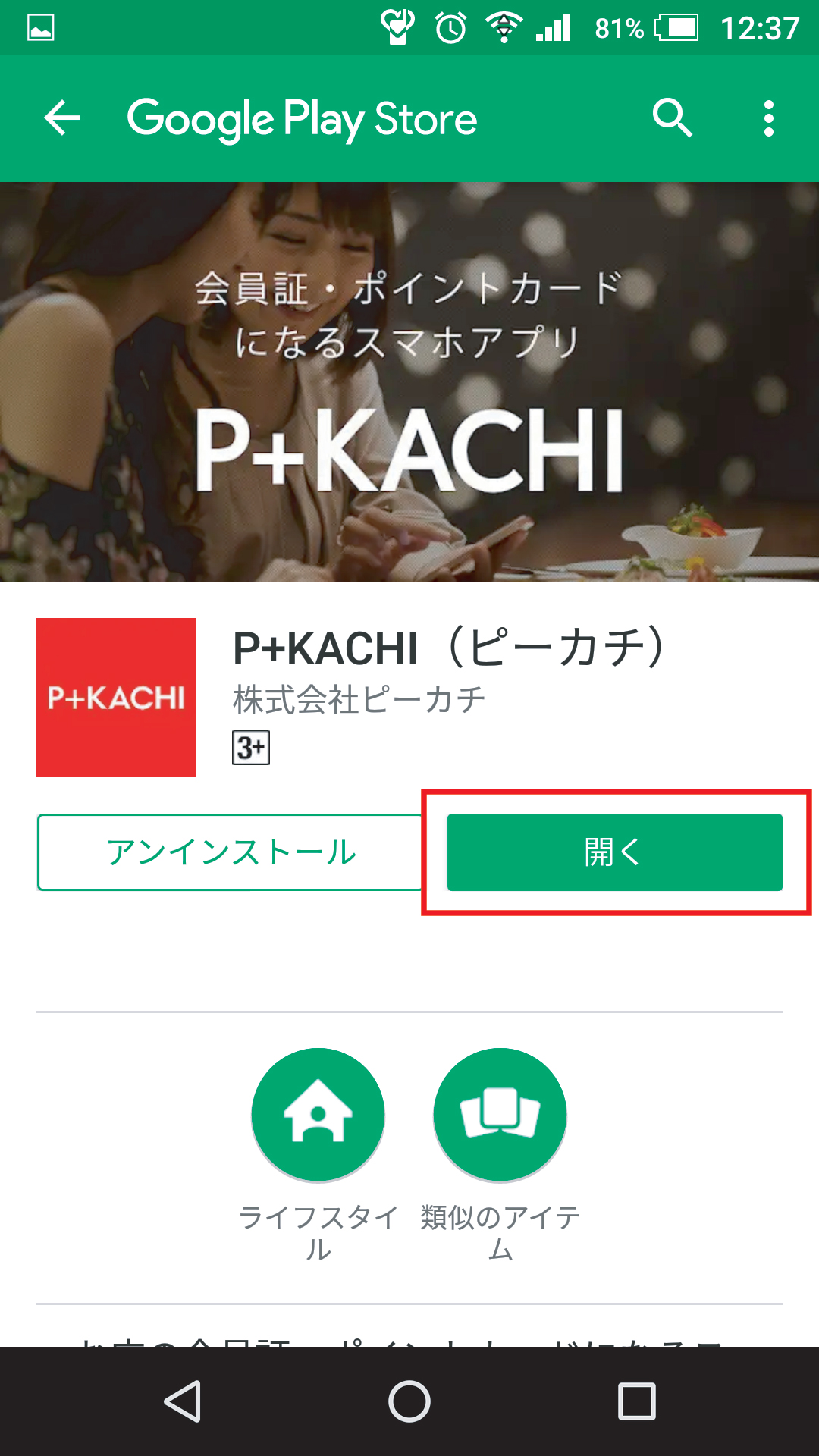 アプリのインストールが完了しました。インストール後、「開く」をタップすることでアプリが起動します。