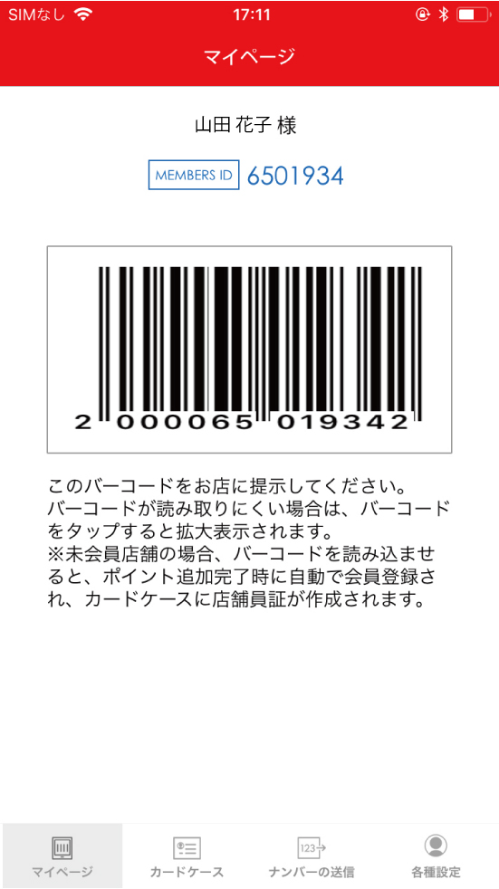 バーコード部分をタップすると拡大したバーコードを表示することができます。