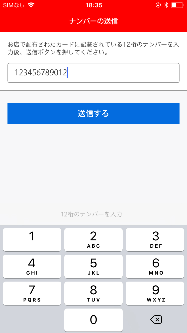 カード記載の12桁のナンバーを入力し、「送信する」をタップします。